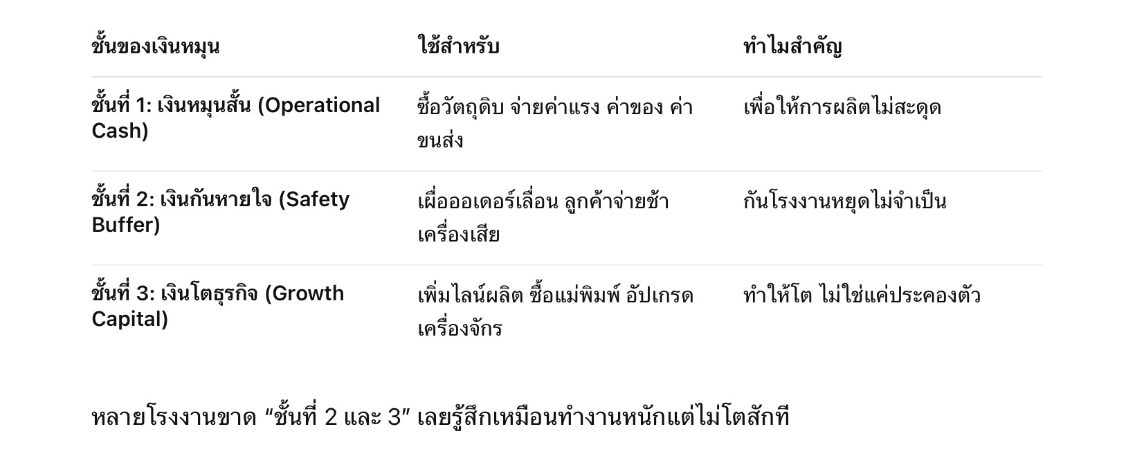 ตรงนี้ต้องพูดกันแบบจริงใจนะครับ — เงินทุนของโรงงาน ไม่มีทางพอ ถ้าหวังจากกำไรอย่างเดียว