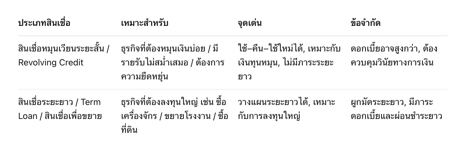 • เหมาะกับธุรกิจที่ต้องหมุนทุนบ่อย มีรายรับไม่แน่นอน หรือมีค่าใช้จ่ายฉุกเฉิน