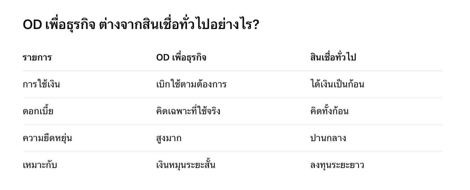 OD เหมาะอย่างยิ่งสำหรับธุรกิจที่มี Cash Flow ไม่สม่ำเสมอ เช่น